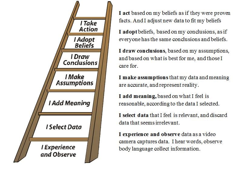 Since we "do not perceive reality, rather, perceive reality we know how to perceive," perhaps we need to better intake our experiences and information to better translate it into comprehensive knowledge which can influence effective and more accurate actions and decisions. Thus, if you follow all the steps of the "Ladder of Inference," you should have a greater understanding of the phenomena you are trying to grasp, which should reduce the effects of context perception.